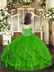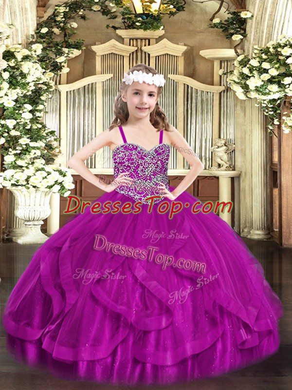 Fuchsia Straps Lace Up Beading and Ruffles Kids Pageant Dress Sleeveless