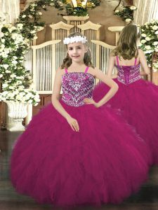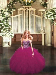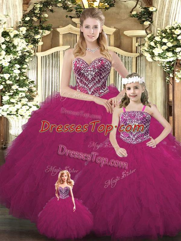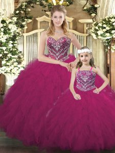 Fuchsia Sweetheart Lace Up Beading and Ruffles Vestidos de Quinceanera Sleeveless