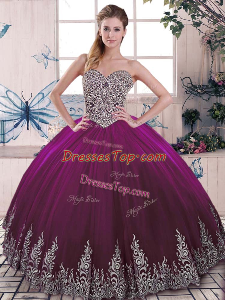 Fuchsia Sweetheart Neckline Beading and Embroidery Sweet 16 Dress Sleeveless Lace Up
