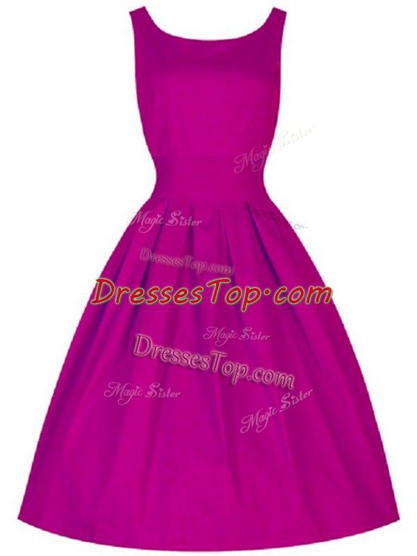 Fuchsia Taffeta Lace Up Court Dresses for Sweet 16 Sleeveless Knee Length Ruching
