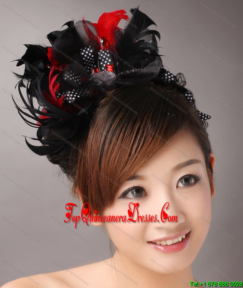 Fully Handmade Sweet Black and Red Headpieces Imitation Pearls With Feathers For Party