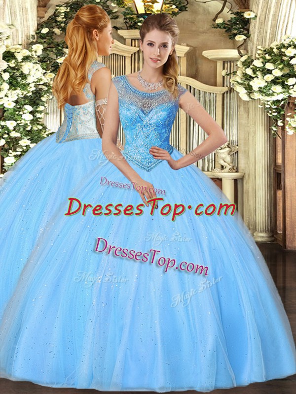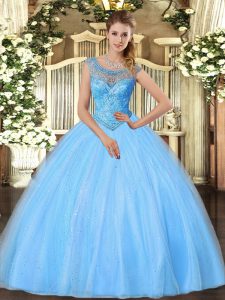 Glamorous Baby Blue Sleeveless Beading Floor Length 15 Quinceanera Dress