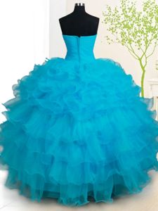 Glamorous Baby Blue Sleeveless Organza Zipper Sweet 16 Quinceanera Dress for Military Ball and Sweet 16 and Quinceanera