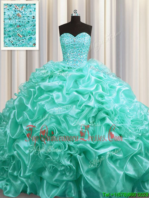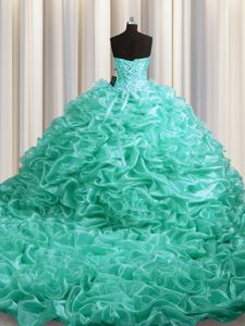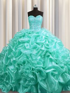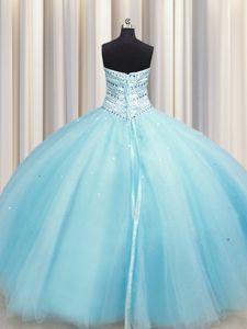 Glamorous Bling-bling Big Puffy Aqua Blue Tulle Lace Up Quinceanera Dresses Sleeveless Floor Length Beading