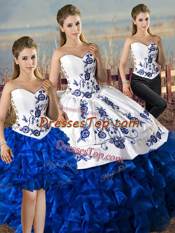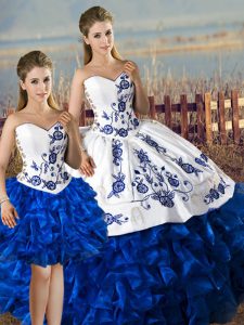 Glamorous Blue And White Sweetheart Lace Up Embroidery and Ruffles 15 Quinceanera Dress Sleeveless