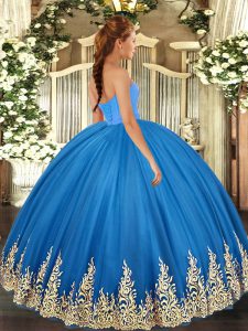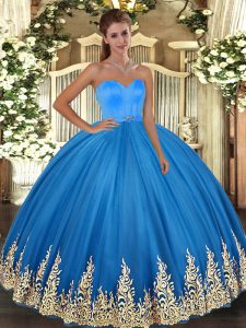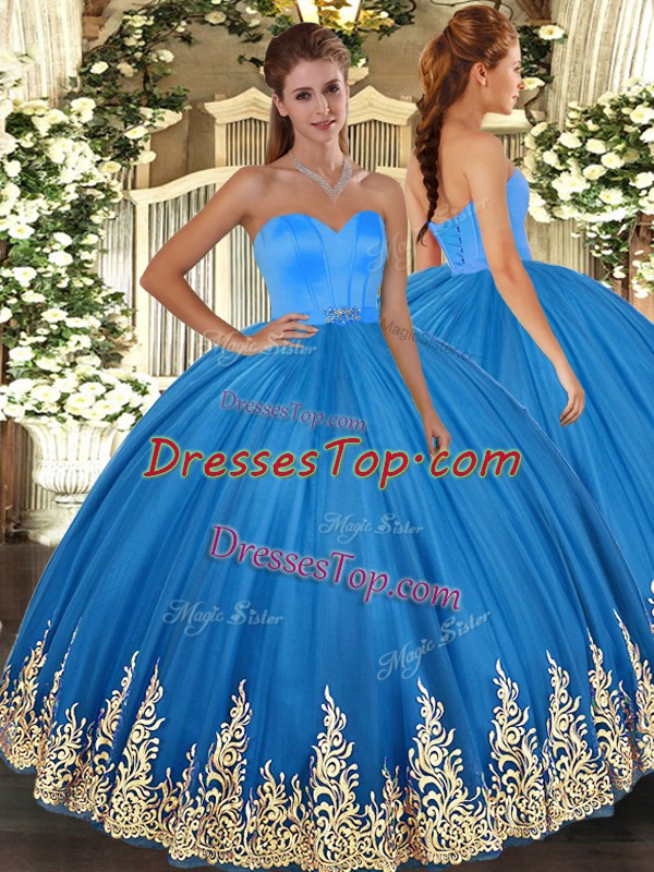 Glamorous Blue Sleeveless Appliques Floor Length Sweet 16 Dress