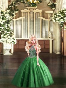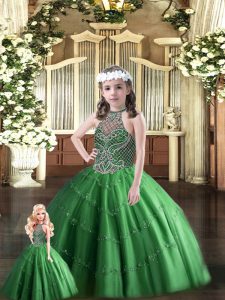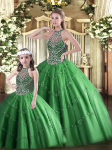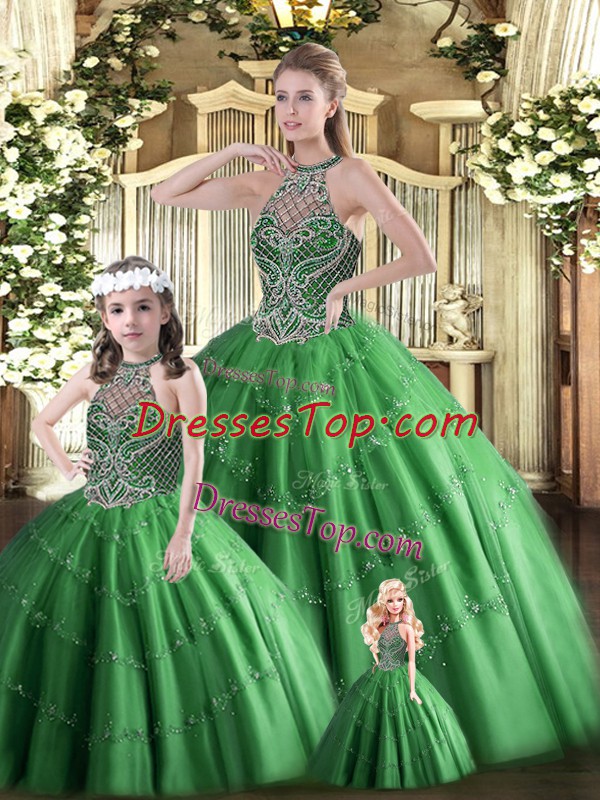 Glamorous Dark Green Ball Gowns Beading Quinceanera Dress Lace Up Tulle Sleeveless Floor Length