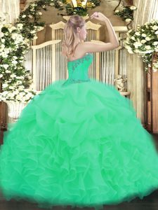Glamorous Floor Length Apple Green Quince Ball Gowns Organza Sleeveless Beading and Ruffles and Pick Ups