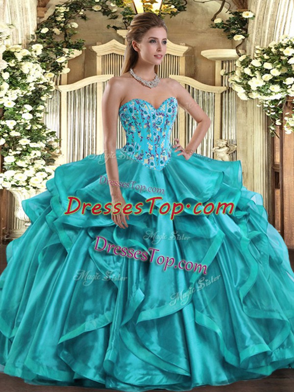 Glamorous Floor Length Ball Gowns Sleeveless Teal Quinceanera Dresses Lace Up