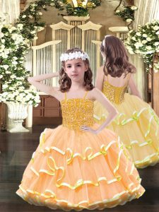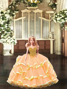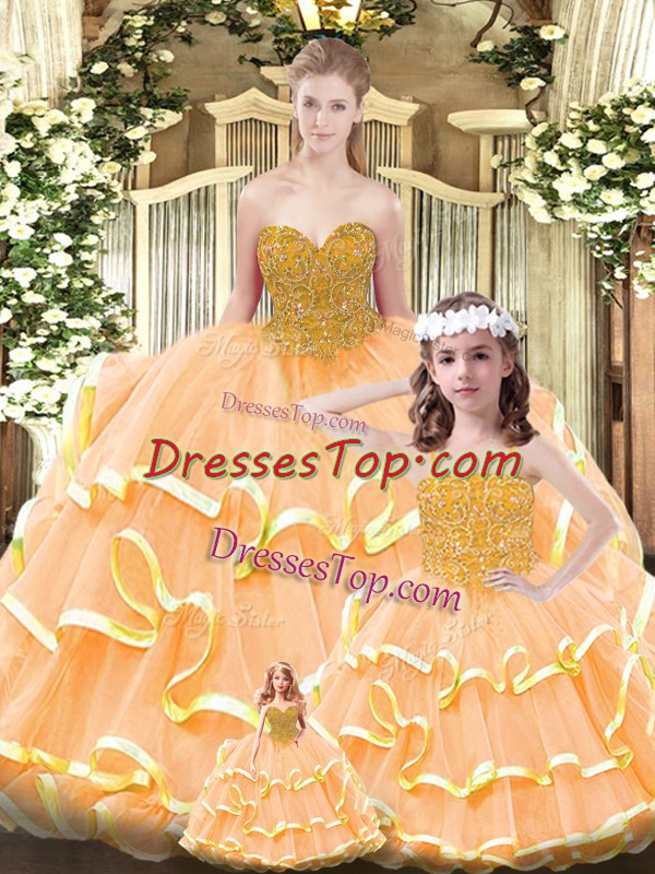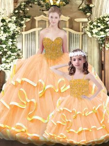 Glamorous Orange Ball Gowns Sweetheart Sleeveless Organza Floor Length Lace Up Beading and Ruffled Layers Quinceanera Dress