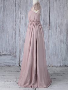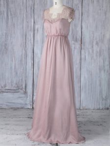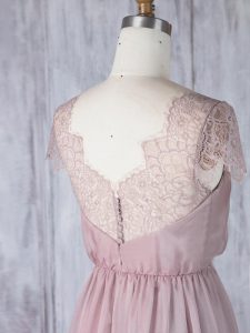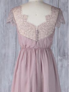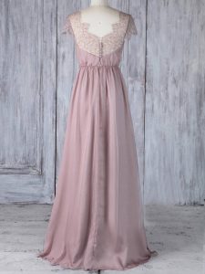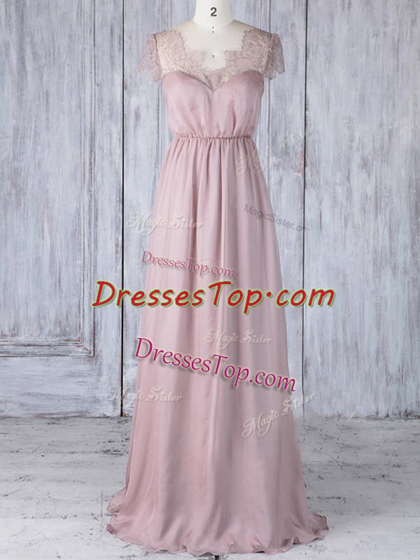 Glamorous Pink Clasp Handle Damas Dress Lace Short Sleeves Floor Length