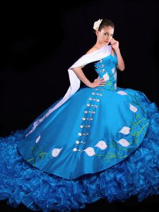 Glamorous Sleeveless Lace Up Floor Length Embroidery and Ruffles 15th Birthday Dress