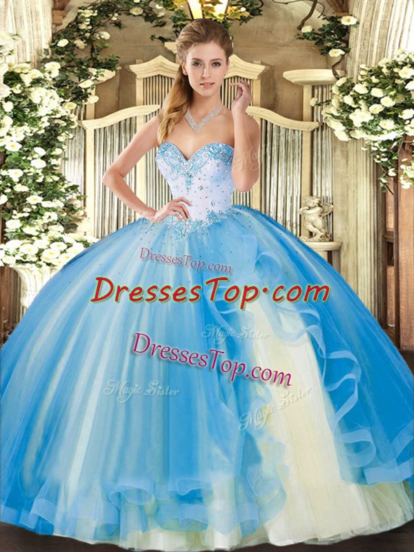 Glittering Beading and Ruffles Vestidos de Quinceanera Baby Blue Lace Up Sleeveless Floor Length