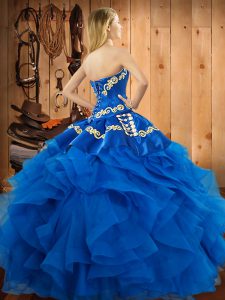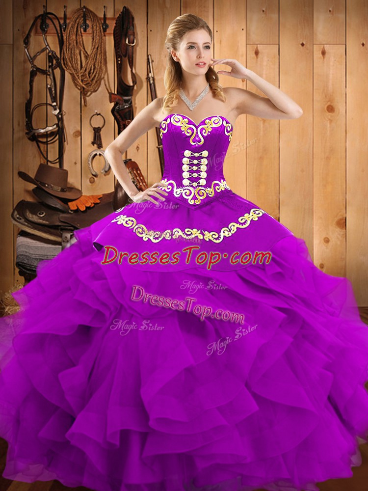 Glittering Floor Length Lace Up 15th Birthday Dress Eggplant Purple for Military Ball and Sweet 16 and Quinceanera with Embroidery and Ruffles