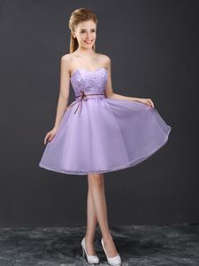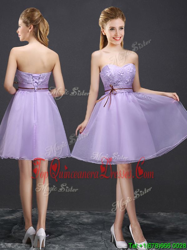 Glittering Mini Length Lace Up Quinceanera Court Dresses Lavender and In for Prom and Party and Wedding Party with Lace