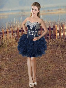 Glittering Navy Blue Ball Gown Prom Dress Sweet 16 and Quinceanera with Embroidery and Ruffles Sweetheart Sleeveless Lace Up