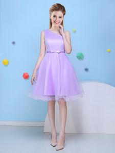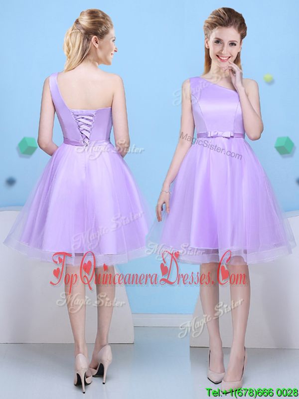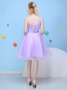 Glittering One Shoulder Lavender Sleeveless Tulle Lace Up Quinceanera Court Dresses for Prom and Party