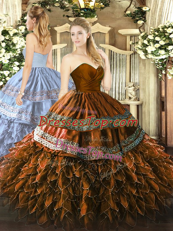 Glittering Sleeveless Embroidery and Ruffles Zipper Quinceanera Gown