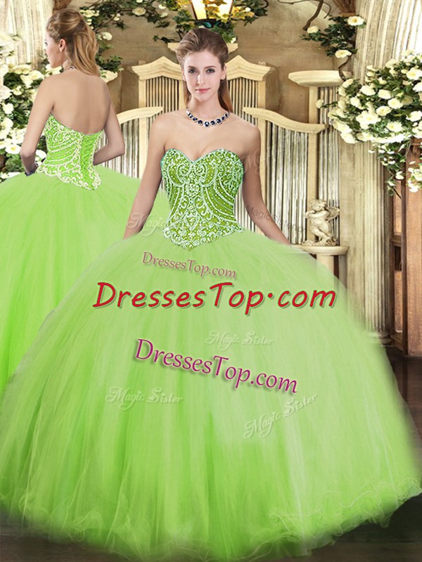 Glittering Sweetheart Sleeveless Tulle 15th Birthday Dress Beading Lace Up