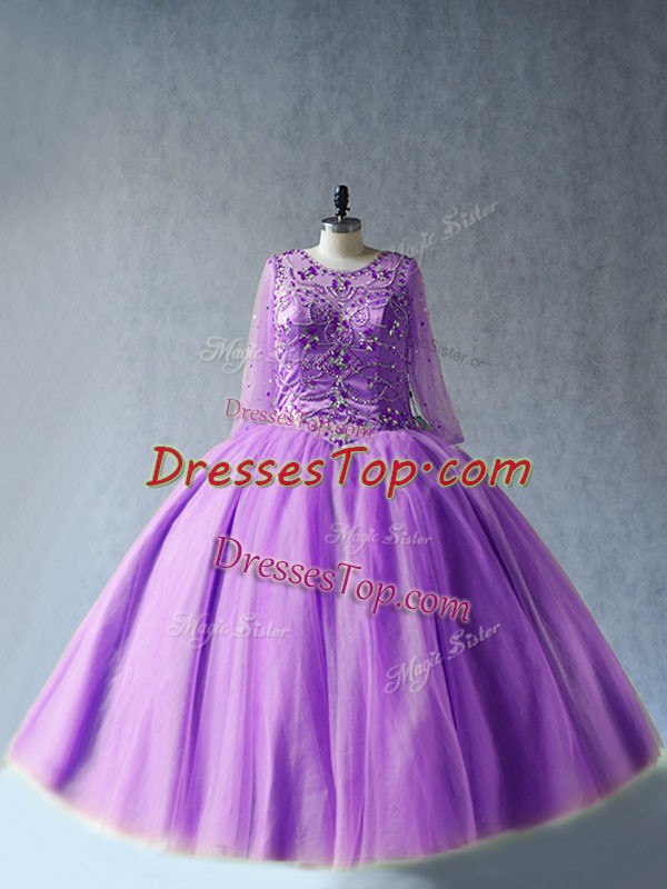 Glittering Tulle Long Sleeves Floor Length Quinceanera Gowns and Beading