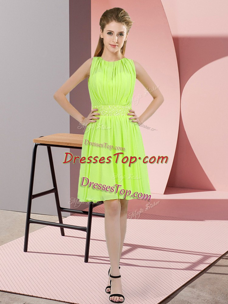 Glittering Yellow Green Empire Scoop Sleeveless Chiffon Knee Length Zipper Sequins Quinceanera Court Dresses