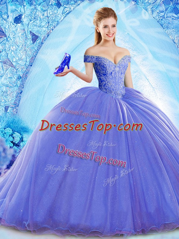 Glorious Blue Quinceanera Dress Organza Brush Train Sleeveless Beading