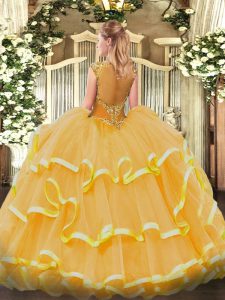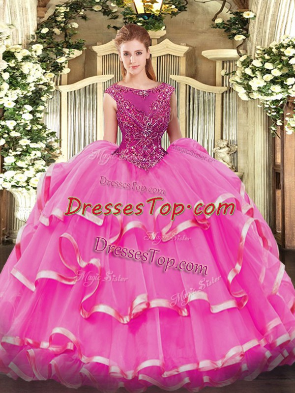 Glorious Fuchsia Ball Gowns Beading and Ruffled Layers Quinceanera Dress Zipper Organza Sleeveless Floor Length