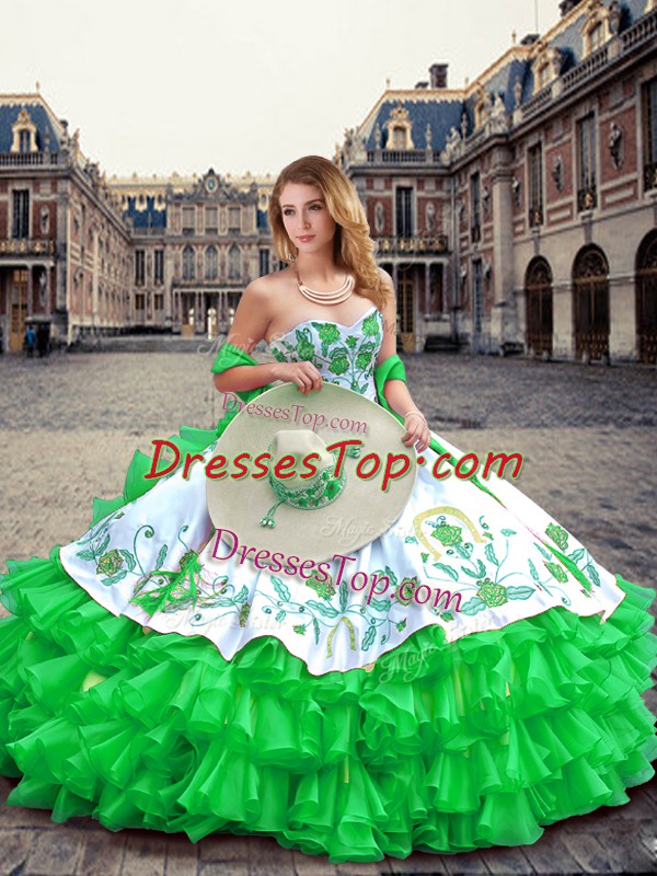 Glorious Green Organza and Taffeta Lace Up Quinceanera Gown Sleeveless Floor Length Embroidery and Ruffled Layers