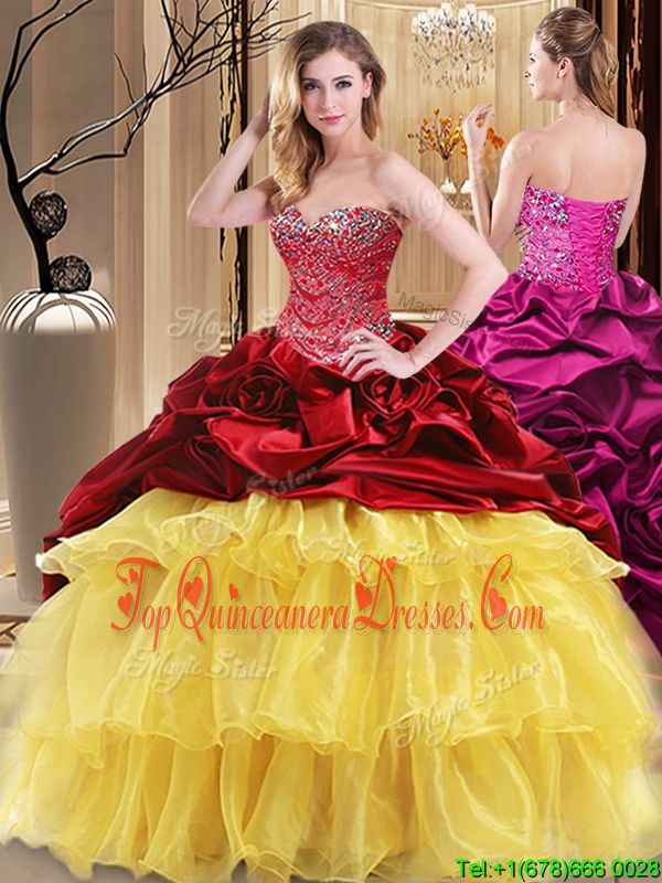 Glorious Lavender Ball Gowns Sweetheart Sleeveless Organza Floor Length Lace Up Beading and Ruffles and Pick Ups Sweet 16 Quinceanera Dress