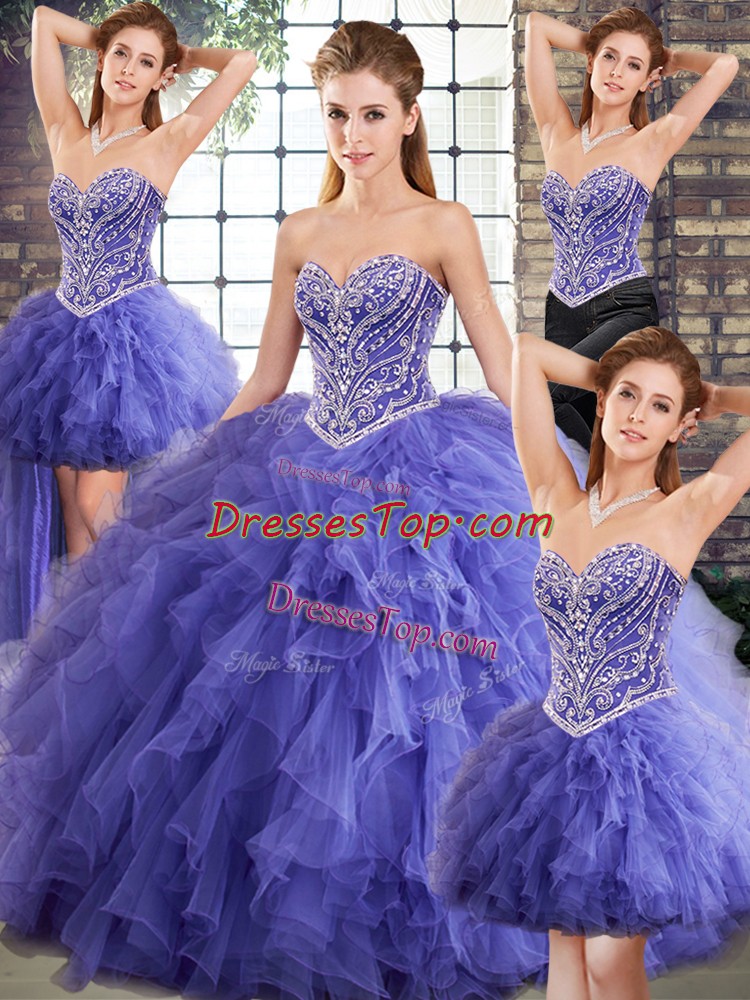 Glorious Lavender Sleeveless Beading and Ruffles Floor Length Quinceanera Dress