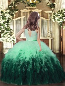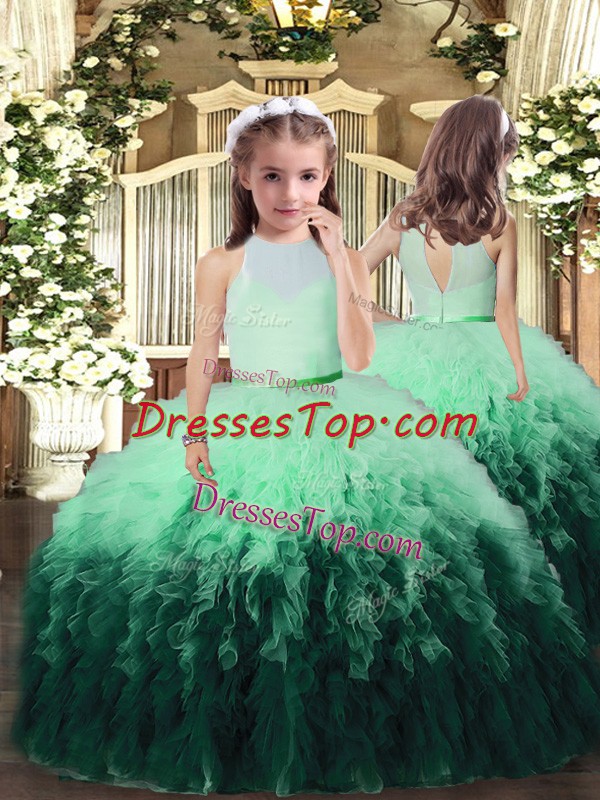Glorious Multi-color Custom Made Pageant Dress Military Ball and Wedding Party with Ruffles High-neck Sleeveless Backless