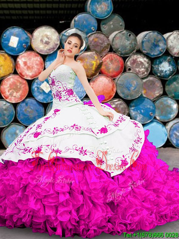Glorious Multi-color Sleeveless Appliques and Embroidery and Ruffles Floor Length 15 Quinceanera Dress