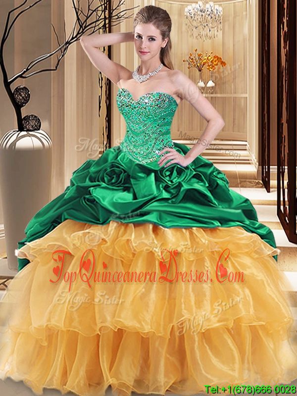 Glorious Organza and Taffeta Sleeveless Floor Length Quince Ball Gowns and Beading and Ruffles