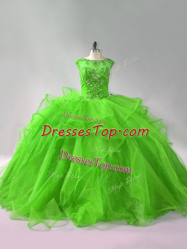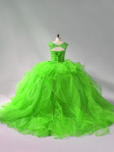 Glorious Organza Lace Up 15 Quinceanera Dress Sleeveless Brush Train Beading and Ruffles
