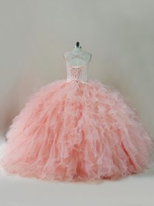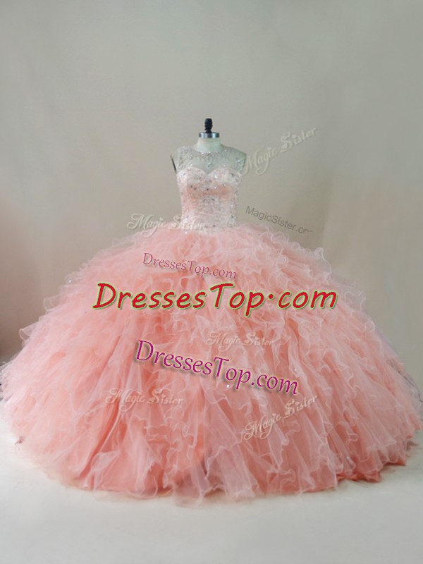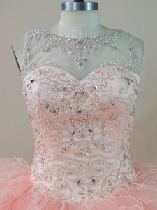 Glorious Peach Sweet 16 Dresses Sweet 16 and Quinceanera with Beading and Ruffles Scoop Sleeveless Lace Up