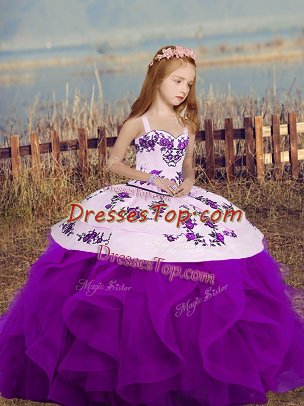 Glorious Purple Ball Gowns Embroidery and Ruffles Little Girls Pageant Dress Wholesale Lace Up Sleeveless Floor Length