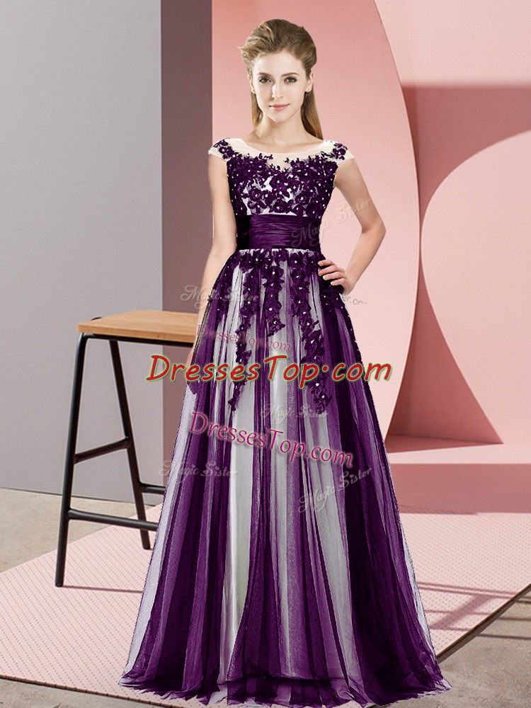 Glorious Scoop Sleeveless Zipper Dama Dress Dark Purple Tulle