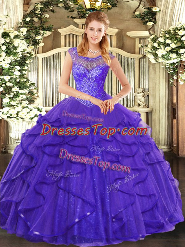 Glorious Tulle Sleeveless Floor Length Quinceanera Dress and Beading and Ruffles