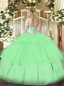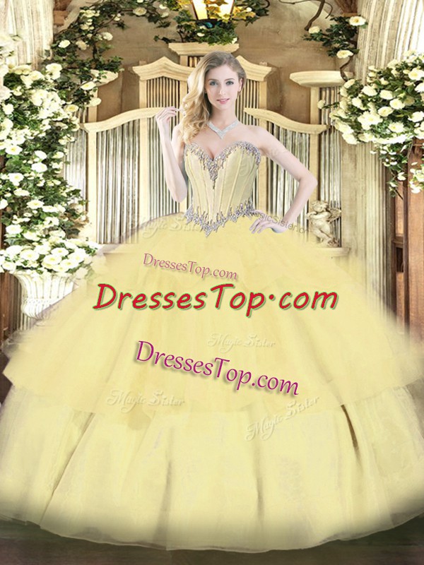 Gold 15 Quinceanera Dress Military Ball and Sweet 16 and Quinceanera with Beading and Ruffled Layers Sweetheart Sleeveless Lace Up