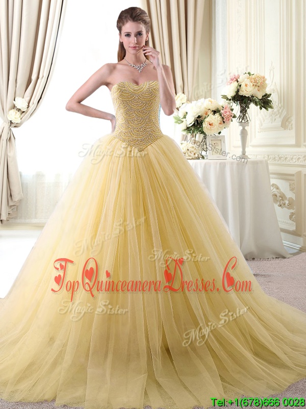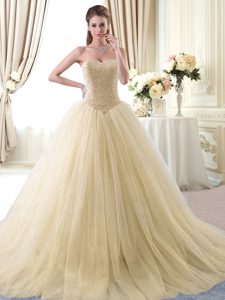 Gold Lace Up Sweetheart Beading Quinceanera Dresses Tulle Sleeveless