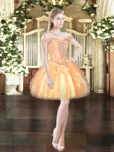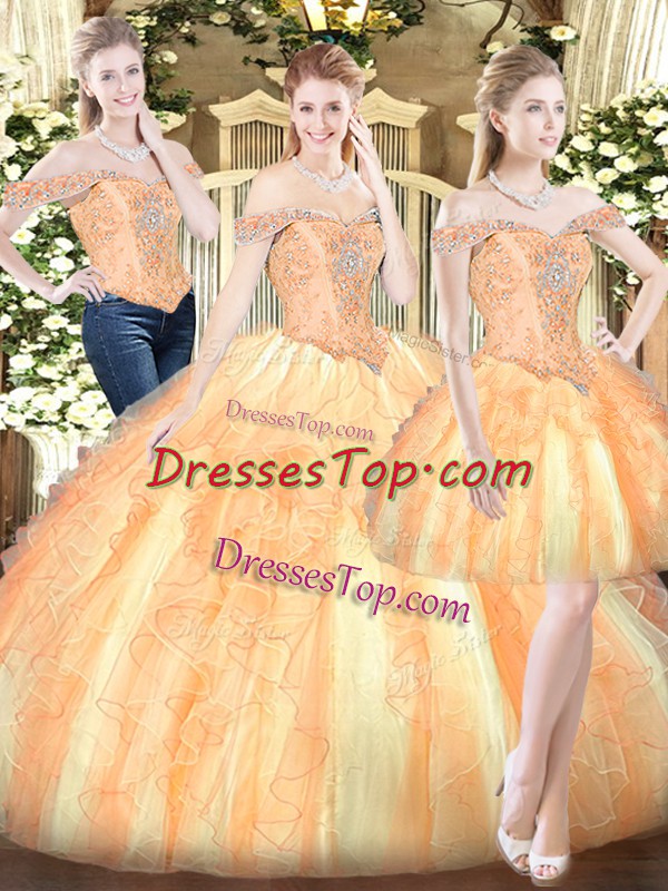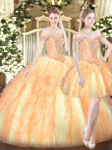 Gold Organza Lace Up Sweet 16 Dresses Sleeveless Floor Length Ruffles