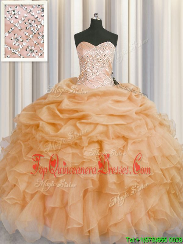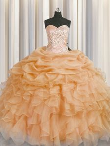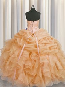 Gold Quinceanera Gowns Military Ball and Sweet 16 and Quinceanera and For with Beading and Ruffles Sweetheart Sleeveless Lace Up