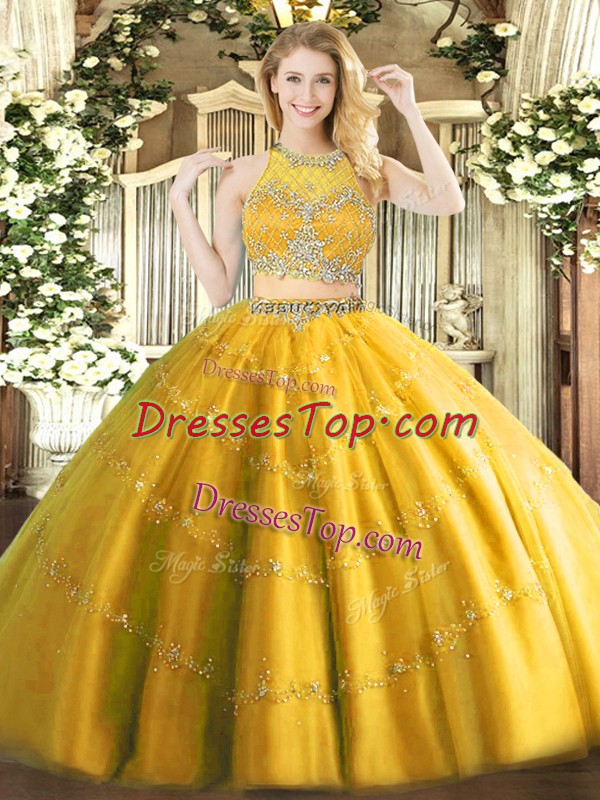Gold Sleeveless Beading Floor Length Quinceanera Dresses