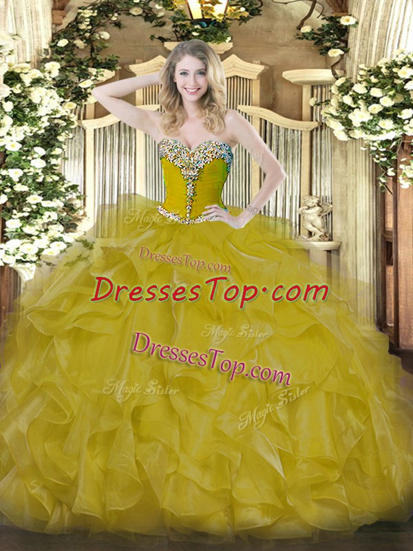 Gold Sleeveless Organza Lace Up Quince Ball Gowns for Military Ball and Sweet 16 and Quinceanera