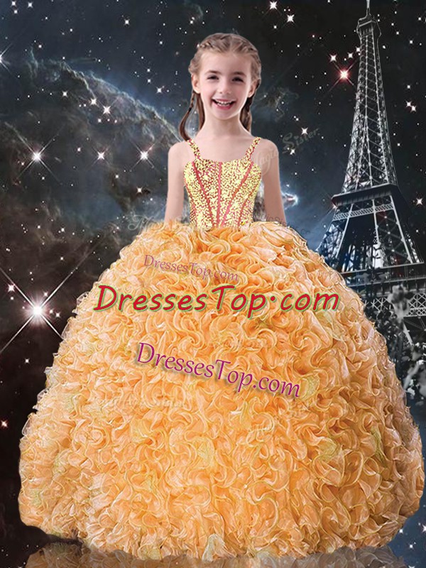 Gold Straps Neckline Beading and Ruffles Pageant Dress Toddler Sleeveless Lace Up