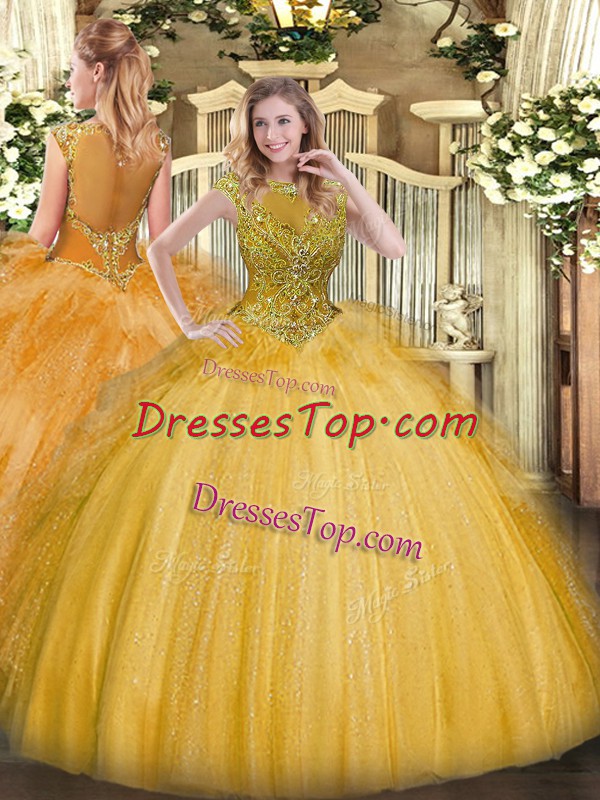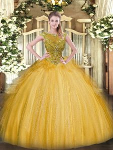 Gold Sweet 16 Quinceanera Dress Sweet 16 and Quinceanera with Beading and Ruffles Scoop Sleeveless Zipper