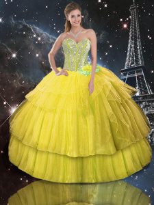 Gold Sweetheart Lace Up Ruffled Layers 15 Quinceanera Dress Sleeveless