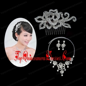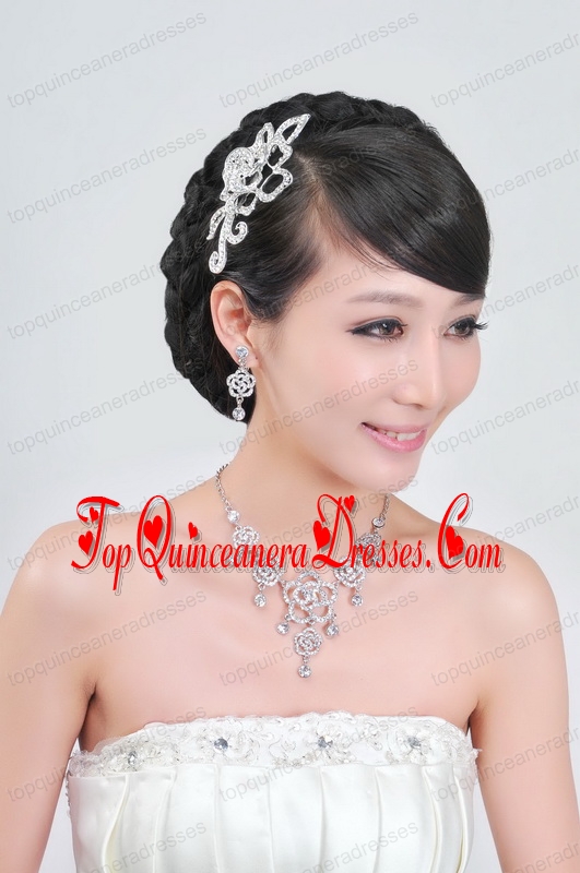 Gorgeous Alloy With Rhinestone Ladies Necklace and Head piece