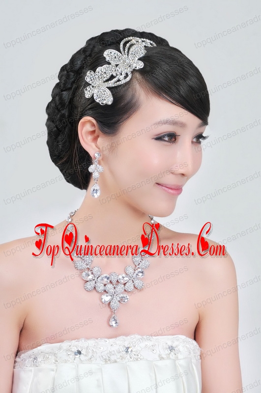 Gorgeous Alloy With Rhinestone Ladies Necklace and Headpiece