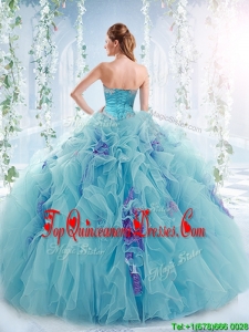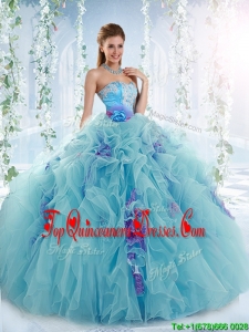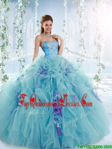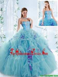Gorgeous Applique and Ruffled Detachable Modern Quinceanera Dresses in Aqua Blue